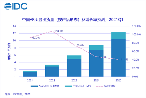 IDC《2021年季度增强现实与虚拟现实市场追踪报告》显示,中国VR硬件头显市场从2021年将开始出现大幅增长,未来五年市场复合增长率达到71.1%。游戏作为消费级VR为重要的使用场景,游戏内容的质量和数量对于VR硬件设备的出货起到决定性作用。海内外的科技巨头在元宇宙概念横空出世后,已经明显加快了游戏布局的节奏。爆款IP的出现和游戏类型的扩充,使得VR用户在线时长和VR用户数量明显提升。优质游戏内容将会直接推动提升VR设备的渗透率。